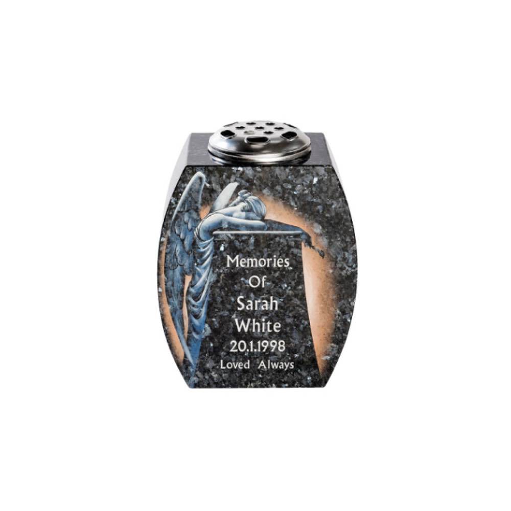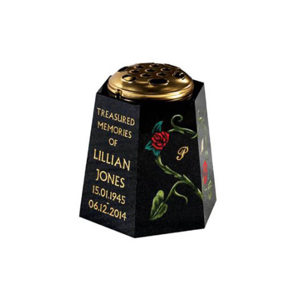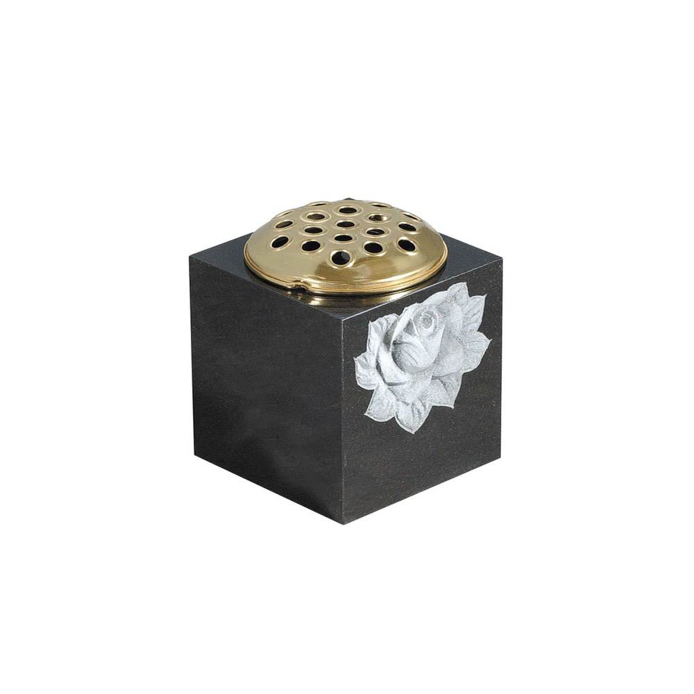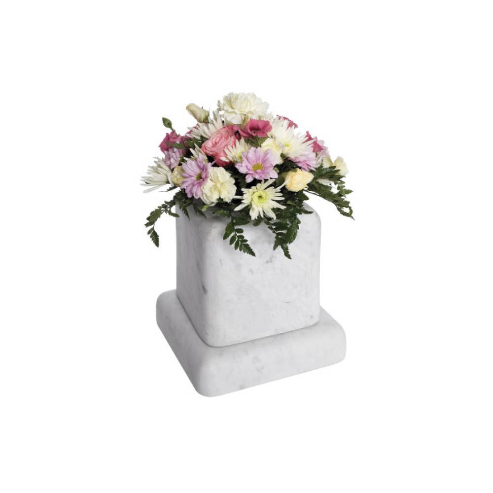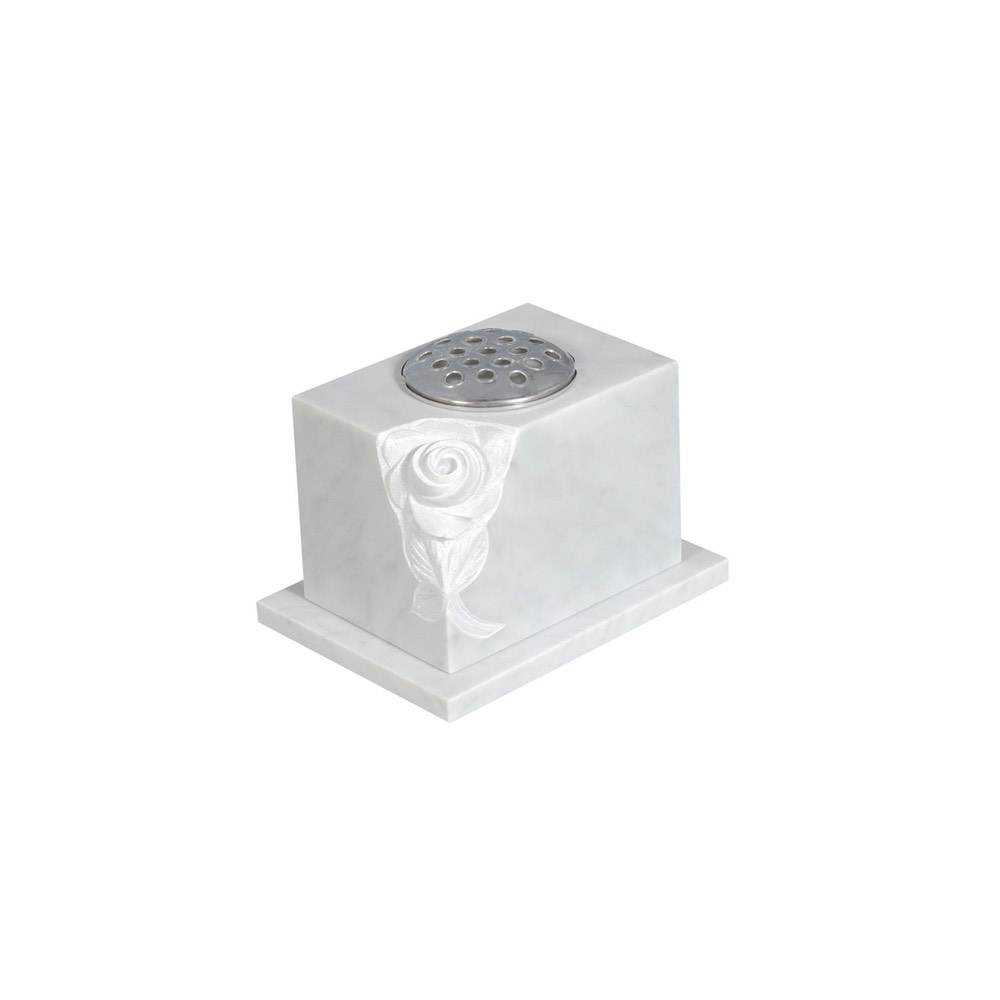 White marble Vase with carved floral image (Rose) on corner. Also available in other colours.