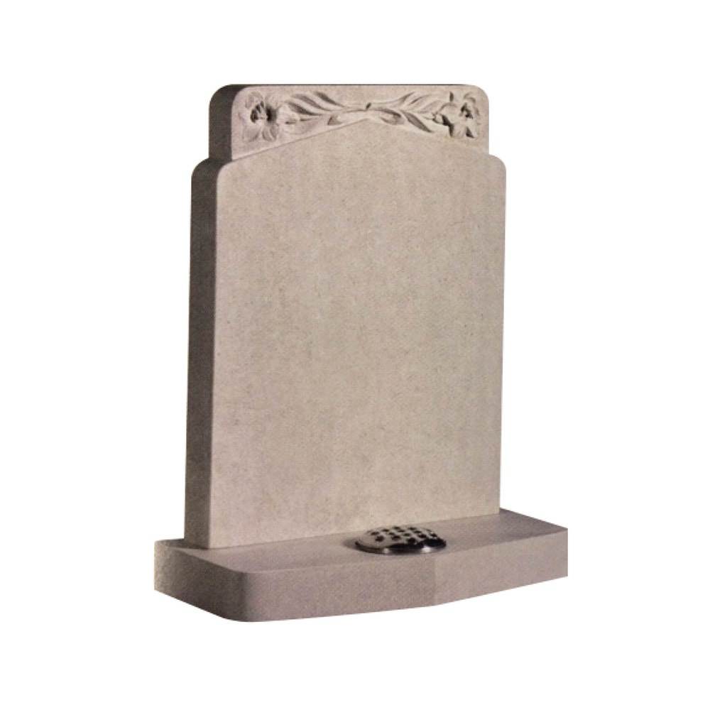 A contemporary shape and modern designs create a stylish look. The stylised Camerton orchid design winds up the broad chamfered sides of this elegant memorial.