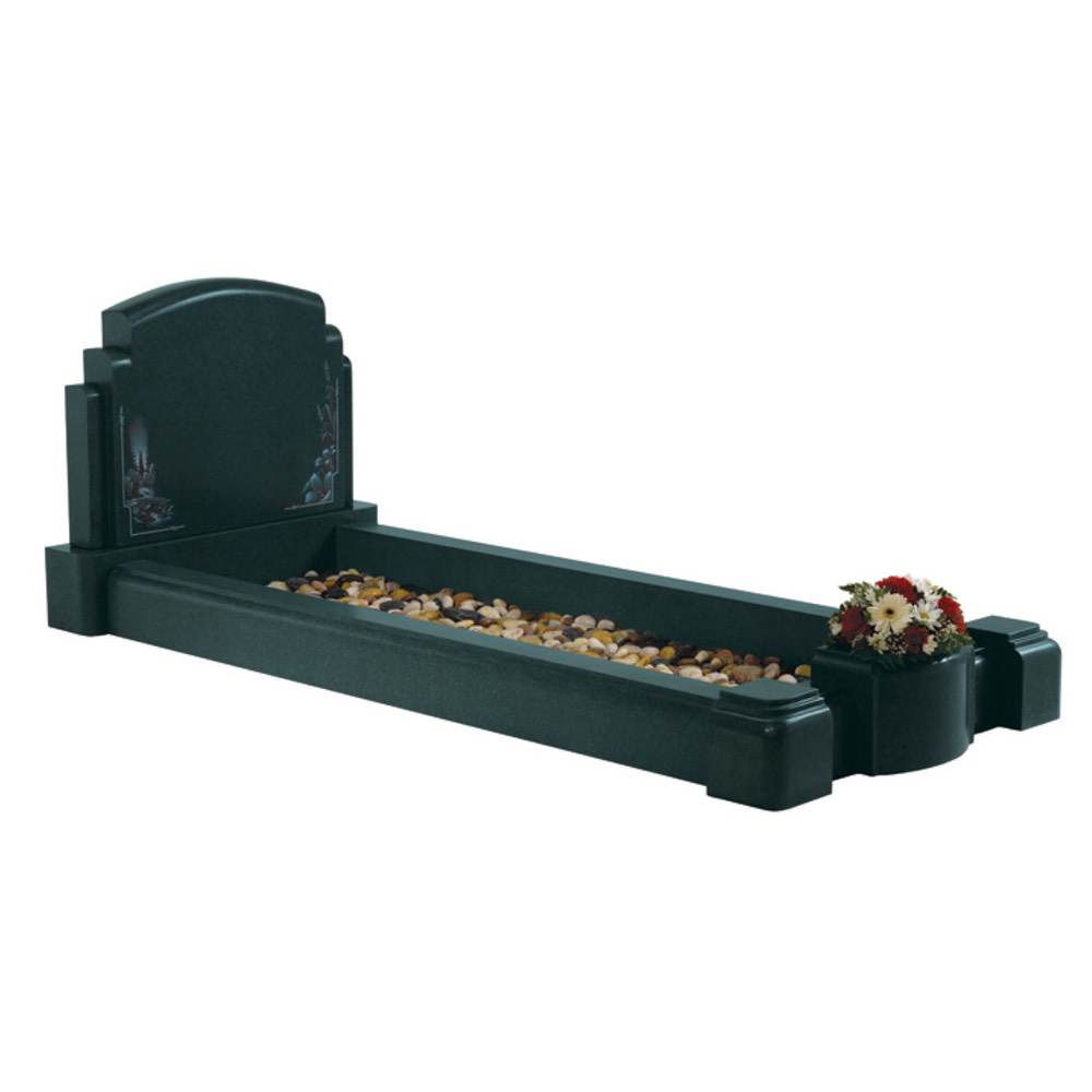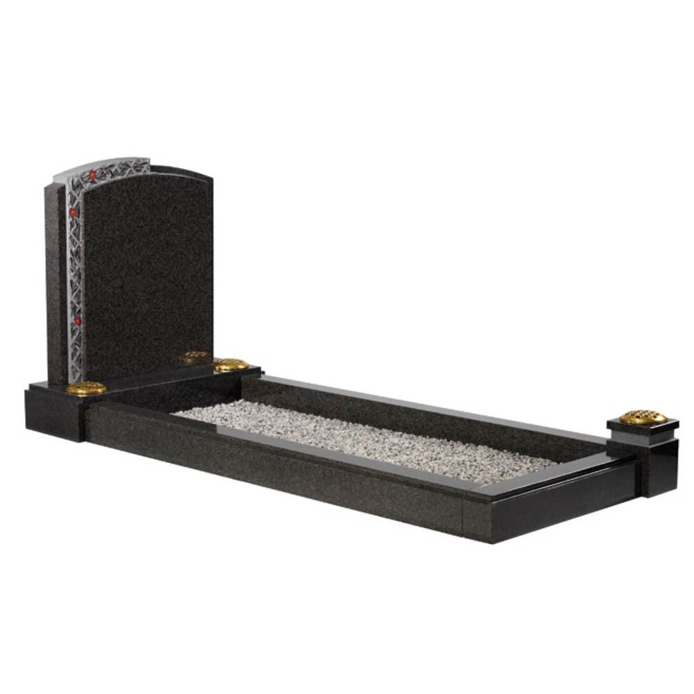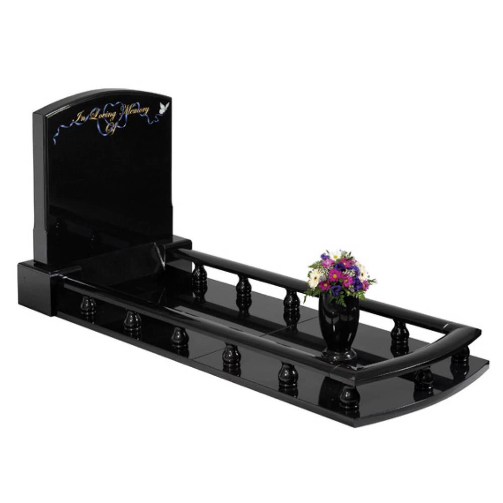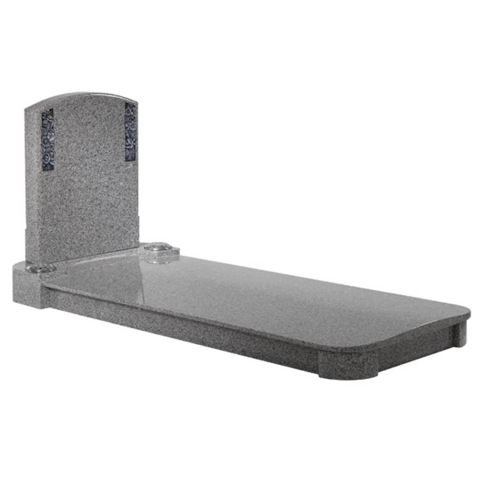 A fully covered kerb memorial with contemporary features shown in Oriental Light Grey granite.